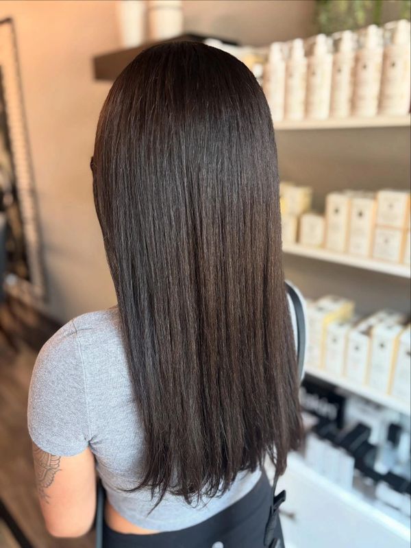 Each treatment is custom blended by your stylist for your individual hair type. The treatment only needs to sit on the hair for 5 minutes and it lasts 4-6 weeks.